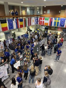 Ein besonderes Highlight war das abendliche Europa-Café: Im Foyer präsentierten Schulen an kreativ gestalteten Pinnwänden ihre Projekte. Wir hörten Vorträge, sammelten Ideen und bekamen vielfältige Einblicke. Im Anschluss folgte ein bunter Abend mit Beiträgen verschiedener Schulen. Wir selbst stellten unsere Erfahrungen mit dem Kreativwettbewerb vor. Spannend war auch die Diskussion zum Thema Atomenergie, die aus einer spontanen Abstimmung entstand.