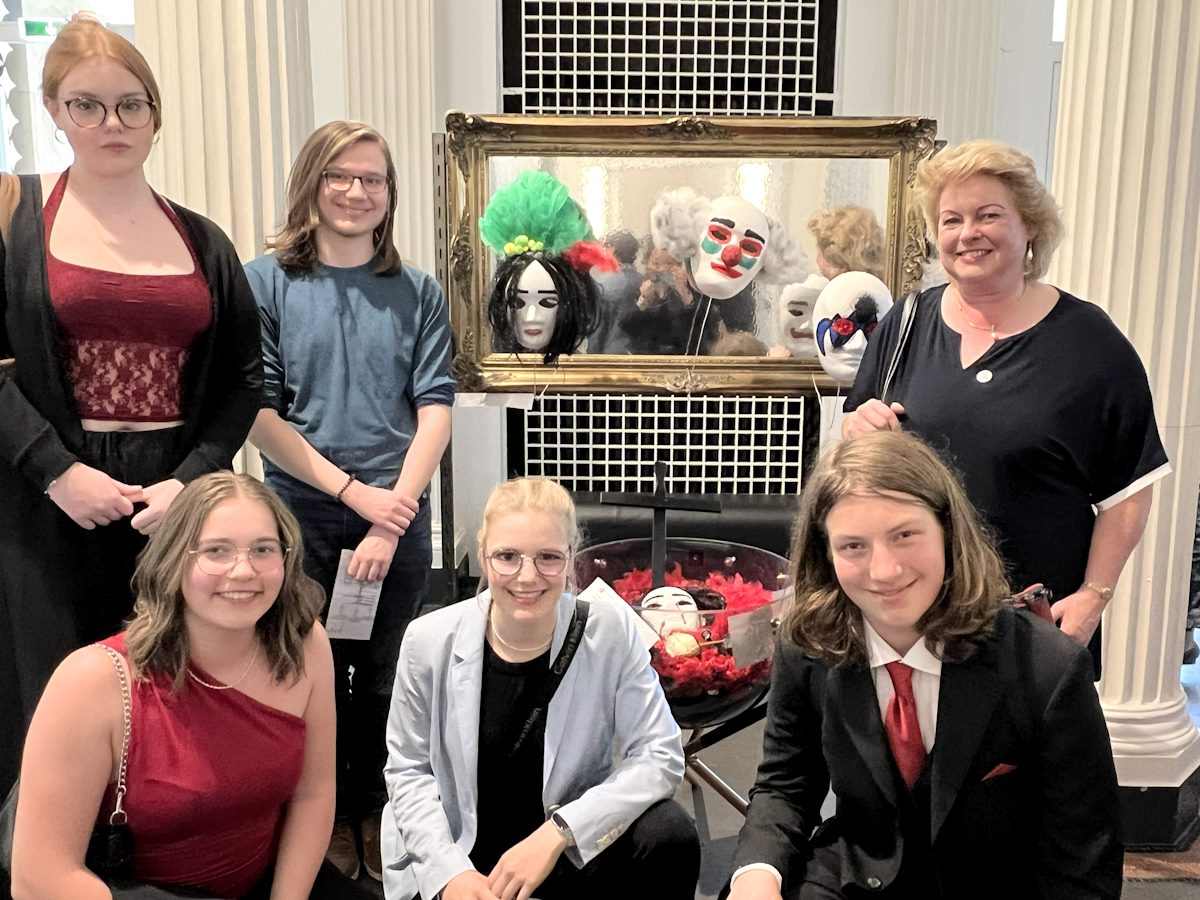 Unsere Opern-AG beschäftigte sich im Rahmen des Jubiläums mit der Oper ‚Der Bajazzo‘ von Ruggero Leoncavallo aus dem 19. Jahrhundert. Durch die Arbeit mit dem Libretto und auch der besuchten Aufführung des ‚Bajazzo‘ im Dezember 2024 wurde uns deutlich, dass viele dieser Femizide im direkten häuslichen Umfeld begangen werden. Frauenmorde hinter ‚Masken des Schweigens‘.
