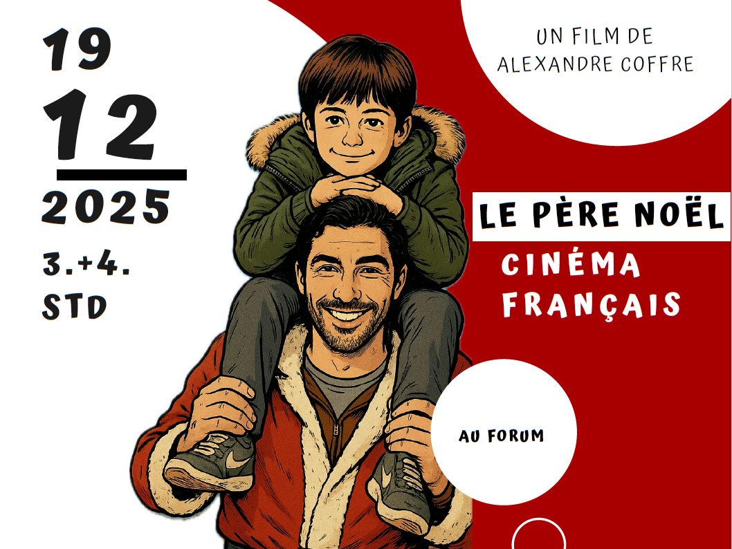 Gezeigt wurde der Film „Le Père Noël“, eine humorvolle und zugleich herzerwärmende Weihnachtsgeschichte. Im Mittelpunkt steht der Weihnachtsmann, der – ganz anders als erwartet – in turbulente und chaotische Situationen gerät. Mit viel Witz, überraschenden Wendungen und einer guten Portion französischem Humor sorgt der Film für beste Unterhaltung und eine stimmungsvolle Einstimmung auf die Weihnachtszeit.