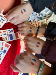 Ein besonderes Highlight war das kreative Mitmachangebot: Wer wollte, konnte sich französische Tattoos – etwa mit der Trikolore, dem Eiffelturm oder anderen typischen Motiven – machen lassen. Zudem lud die „Fotobox“ dazu ein, witzige Erinnerungsfotos zu schießen. Mit verschiedenen Hintergründen bekannter französischer Sehenswürdigkeiten wie dem Eiffelturm, Montmartre oder einem Pariser Café sowie passenden Accessoires entstanden zahlreiche originelle Schnappschüsse.